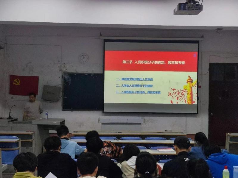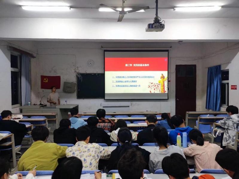 本次党课主题为:“明确标准,申请入党”,彭舟同志从申请入党的条件、党员的基本条件、入党积极分子的确立教育和考察、入党流程及注意事项四个方面系统地讲述了老员工入党须知及注意事项。他向全体积极分子介绍了老员工的入党流程,告诫每位学员要认真对待入党的每一个环节,并分享了时代楷模黄文秀、支月英等优秀党员的先进事迹,呼吁全体学员要向他们学习,做到在思想和行动上入党。党课期间,同学们注意力高度集中、认真听讲,并做好学习笔记。最后,彭部长鼓励大家要积极学习、不断提升自己,争取早日成为一名合格的共产党员。