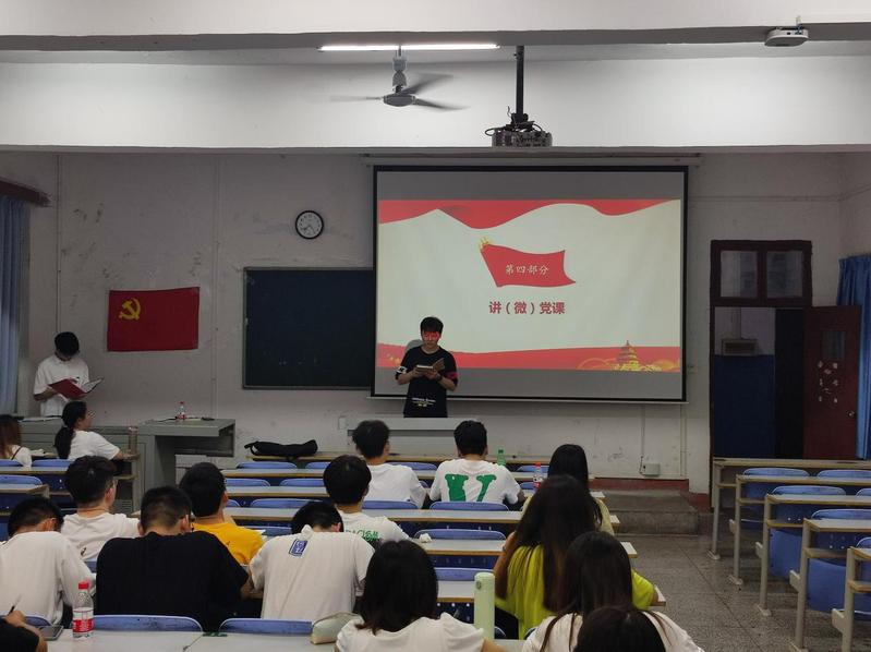 在完成缴纳党费、重温入党誓词和诵读党章的环节后,各支部党员代表讲授微党课。其中二支部郑淇文同志以习总书记在庆祝中国共产主义青年团成立100周年大会上的重要讲话为主题讲授微党课,带领全体党员同志重温了共青团的百年征程,呼吁大家积极响应党和国家的号召,勇于承当历史使命与责任担当,用青春和汗水打拼出一个更加美好的中国。蔡文续同志谈体会时讲到,实现中国梦是一场历史接力赛,当代青年要在实现中华民族伟大复兴的赛道上奋勇争先,为社会主义现代化建设添砖加瓦。随后全体人员持续学习习近平总书记最新重要讲话精神,并聆听了20名“最美基层高校毕业生”的动人故事,以此大力弘扬五四精神、劳模精神,凝聚青年强大发展动力。最后,党员同志们围绕习近平总书记在中国人民大学考察时、在庆祝中国共产党青年团成立100周年大会上的重要讲话精神,结合工作实际、开展专题讨论,进一步提升了自己的思想水平。