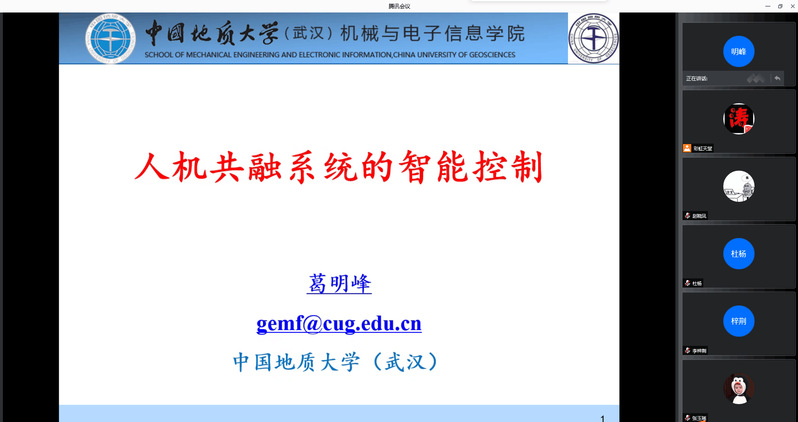 202265日,中国地质大学(武汉)葛明峰教授应milan米兰邀请,作题为“人机共融系统的智能控制”的线上学术报告。​milan米兰部分教师及研究生参加了报告会,报告会由​milan米兰经理詹习生教授主持。