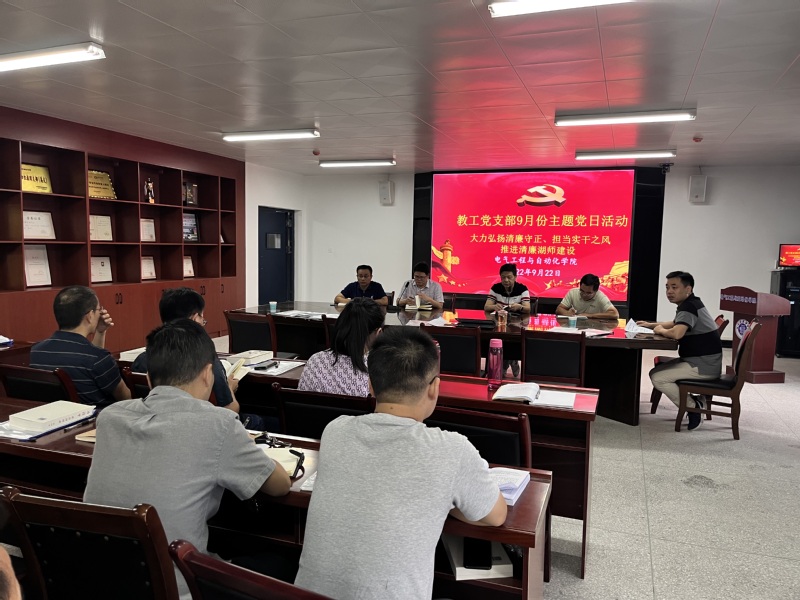为深入学习贯彻习近平新时代中国特色社会主义思想,推进党建引领学校发展,着力促进基层党建工作提质增效,9月22日,milan米兰教工党支部以“大力弘扬清廉守正、担当实干之风,推进清廉湖师建设”为主题开展9月份主题党日活动。党支部书记杨青胜同志主持会议,全体教工党员参会。