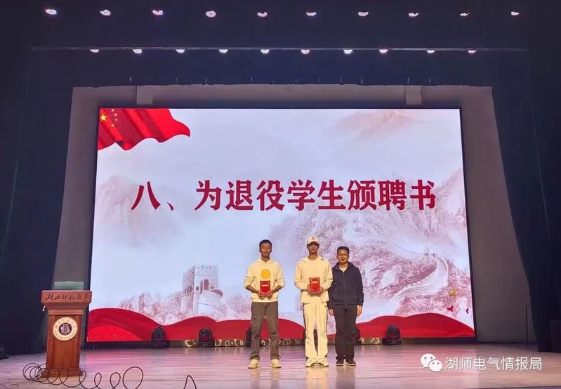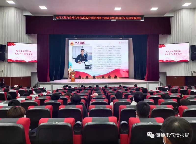 大会由一段国防教育宣传片拉开帷幕。会议伊始,辅导员黄新望上台致辞,他指出此次宣讲会不仅仅是征兵宣传的动员会,更是增强国防安全忧患意识的动员会,希望电气学子能够将家国情怀、时代机遇、个人追求结合起来,树立正确的人生追求。其次,由两位退役士兵同学发言,他们介绍了参军入伍的政策,分享了青春无悔的军旅故事,带来了自己对忧患意识的认识,带领同学们了解国防的重要性。紧接着,由今年报名参军入伍的1905班谢晓添同学介绍自己报名初衷和军营规划,激励在座同学投身军旅中建功新时代。宣讲过程中,同学们积极提出他们心中对于参军流程的疑惑,两位退伍同学热情进行了解答。最后,黄新望对部分参军事宜进行补充并向两位退役员工颁发宣传员聘书。