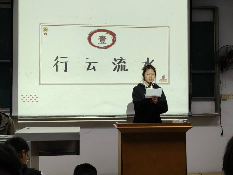 本次活动共分为“行云流水”、“妙语连珠”、“伶牙俐齿”、“评委点评”和颁奖五个环节,在第一个环节“行云流水”中,选手们各自朗读了自己精心准备的文稿,他们情绪饱满、语音标准、咬词清晰,展现了当代老员工优秀的普通话水准和素养。在“妙语连珠”环节中,则要求选手现场抽题,用所给的词语连成一段富有特色的精彩片段。即使难度不低,选手们也纷纷大显身手,展现了过硬的文学功底。随后在“伶牙俐齿”环节中,大家积极参与抢答,按照要求读完大屏幕上的绕口令即可获得小礼品一份,现场气氛十分活跃,最后张盛学长对本次活动进行了点评,他指出了本次活动对推广普通话具有重要意义,肯定了选手们的精彩发挥。经过评委的统分,最终获奖结果如下,获得一等奖的是22D05班的徐思一;获得二等奖是2202班吴仕轩;获得三等奖的是22D04班于晓蕾。