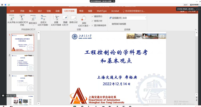 2022年12月14日下午,上海交通大学席裕庚教授应milan米兰邀请,在腾讯会议上作题为“工程控制论的学科思考与基本观点”的线上视频学术报告。milan米兰部分教师及研究生参加了报告会,报告会由milan米兰韩涛老师主持。