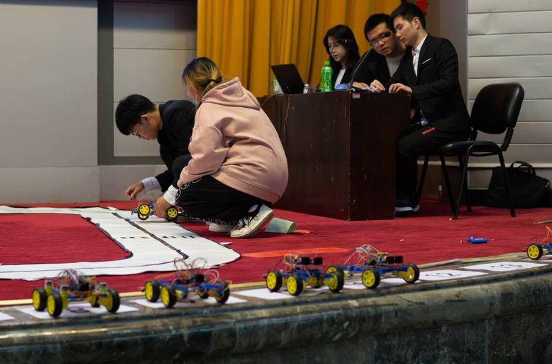 随后,经过评委们的评定,最终选出获奖者名单如下:荣获一等奖的队伍有蓝牙组“未云何龙”队和循迹组“前‘兔’无量”队,荣获二等奖的有蓝牙组“狂飙”队和循迹组“地平线”队,荣获三等奖的队伍为蓝牙组“纯鹿人”队和“新秀”队以及循迹组“GTR”队。