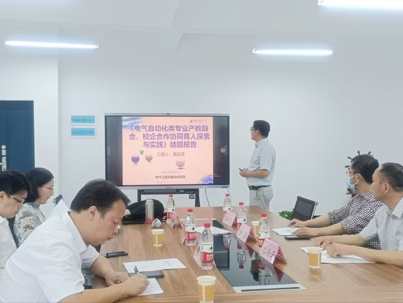 2023年5月17日,由公司副经理高红亮副教授主持的省级教研课题“电气自动化类专业产教融合、校企合作协同育人探索与实践”项目结题答辩会在产教融合中心24324会议室召开。出席本次答辩会的评审专家有黄冈师范学院副董事长胡国珍教授、华中科技大学人工智能与自动化学院王燕舞教授、湖北理工学院机电工程学院副经理陶晶教授,AC米兰中文官网计算机与信息工程学院副经理童强教授、AC米兰中文官网物理与电子科学学院刘兴云副教授。会议由评审专家组组长胡国珍教授主持。