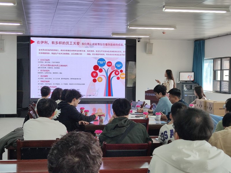 宣讲伊始,湖北黄冈伊利乳业有限公司倪专员通过播放暖场视频和企业介绍视频,通过有奖提问等方式让员工了解企业,增进了亲近感。随后,该经理从企业文化、企业地位、公司优势、人才培养、就业地点等方面进行进一步的讲解,通过与员工互动提问,知识竞答等形式逐步拉进与员工关系。最后介绍了生活环境,食宿管理制度等企业情况并就大家关心的薪资待遇、福利保障和企业需求等方面重点进行介绍。