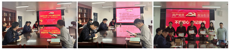 活动中,支部党员按月交纳了党费、重温入党誓词、集体诵读党章,支部书记陈兮同志代表教师党支部为于俊、冯喆、李维、涂建、孙怡五位同志赠送“政治生日”贺卡并合影留念。