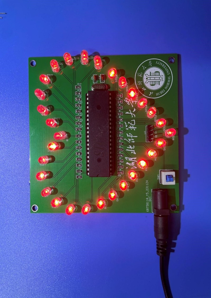 决赛环节,在智能爱好者协会会长简要讲述比赛的意义和前期工作,以及工作人员讲解决赛规则后正式拉开帷幕。比赛现场,精彩迭出不穷,既有年节将至设计的“福袋”型流水灯,更有结合建校五十周年制作的“心”型流水灯表示对母校的祝福,不仅仅有“鱼”型、“蝴蝶”型、“蝙蝠”型、“猫”型等各种身边常见动物造型的流水灯设计,更有“倒计时”“跳跃的火焰”“太极”等充满哲学意蕴的设计产品。
