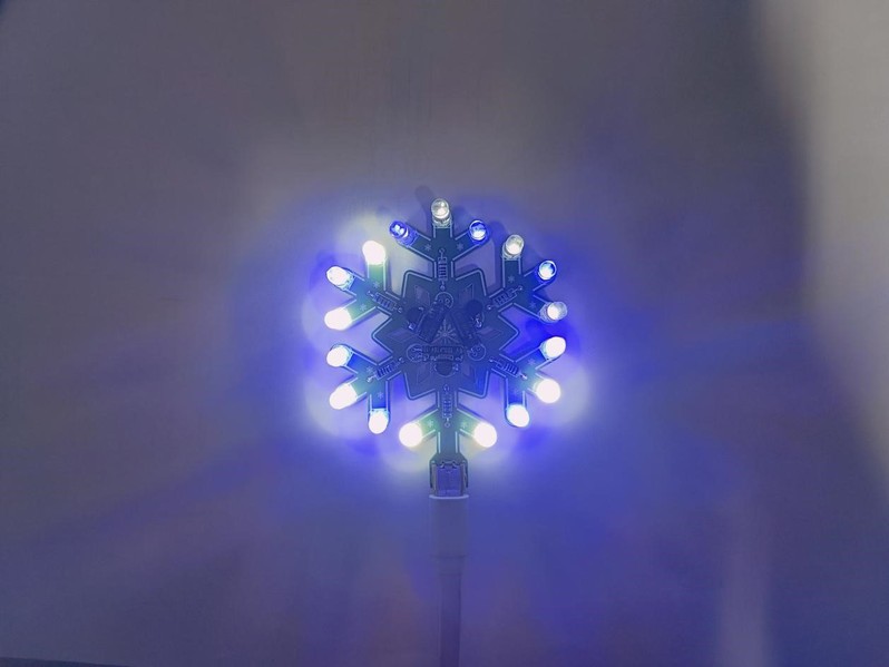 最终,第七组选手精妙地运用三极管与电解电容的电气特性,创作出了一朵美丽的雪花,艳压群芳,一举夺得一等奖。
