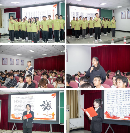 随着悠扬的音乐声响起,白家齐、明莎莎同学带领院团学青自成员合唱诚信歌曲,在动听的歌声中加深对诚信的理解。接着,大家一起观看短片《诚》,通过鲜明生动的故事,感受诚信的重要性。随后曹子奇、孟诗然同学带领大家朗诵经典诗句,2203班的李若彤和2302班的韩蓉同学讲述自己和身边的诚信故事。抑扬顿挫的朗诵轻叩心灵,现实生活事例令人印象深刻,赢得阵阵掌声。现场互动环节,大家积极分享感受,表达对诚实守信的感悟。最后,大家在温馨祥和的氛围中相互祝福和激励。