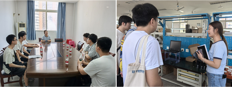 下午,6 名员工在付建伟老师和庞昭老师的共同带领下前往湖北天华智能装备有限公司。公司行政总监占总和生产部熊部长对同学们的到来表示热烈欢迎。占总详细介绍了公司的基本情况以及实习期间的注意事项,熊部长则深入讲解了milan米兰介绍及实习阶段的任务,并就实习基地建设达成共识。之后,占总带领大家参观了组装车间和测试台。最后,同学们还与已在该公司就业的上一届学长进行了亲切交流,学长们分享了工作经验和实习心得,让同学们对未来的实习和工作有了更清晰的认识。