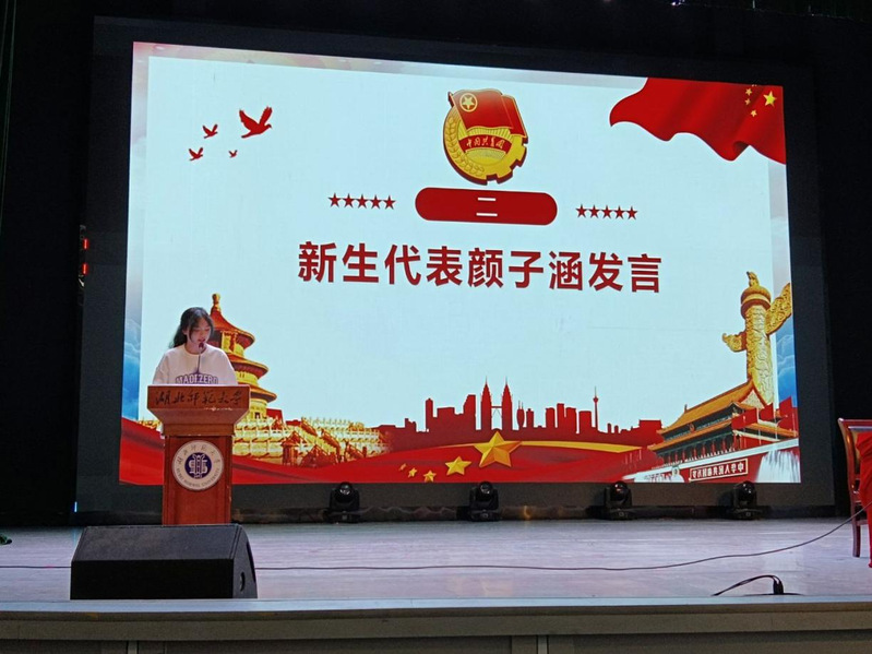 学员代表2505班颜子涵同学发言,她代表全体学员承诺,将以饱满的热情投入学习,认真听讲、积极思考,主动参与实践活动,努力实现思想、能力、行动的全面提升,不负学院期望,践行团员使命。