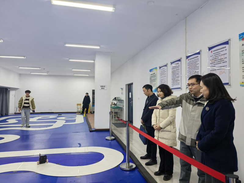 随后,陆咏梅一行走进“一站式”员工社区智能车创新实践基地,实地观摩备赛训练,听取全国老员工智能汽车竞赛组织筹备、备赛进展及历年成果汇报。她对学院在创新实践育人领域的显著成效予以高度赞许,鼓励师生团队勇攀高峰,在科创赛道上持续突破,彰显电气学子的创新活力与实干担当。