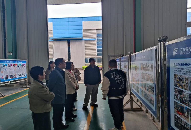 调研期间,学院领导在三丰智能集团副总经理徐恢川、赵伶俐等工作人员陪同下,先后走进企业车间、研发测试基地,了解企业运行和产品设计情况,深入一线了解企业研发制造中的热点、难点问题,寻求破解方向和合作路径。